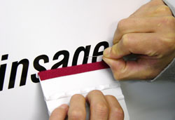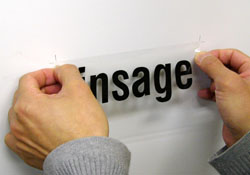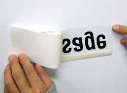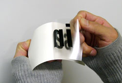 ステッカーの表面に貼ってある透明のアプリケーションシートをゆっくり剥がします。文字、ロゴなどが着いてこないか確認しながら剥がして下さい。面に貼付きにくい場合はしっかり水を抜いてから水が乾くまでしばらく(数時間〜数日)放置してからアプリケーションシートを剥がして下さい。特に気温が低いと貼付きにくいです。 |