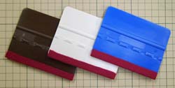 スキージ等で中心から外へこすり圧着していきます。ここで、しっかりと水を抜いて下さい。 |