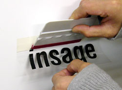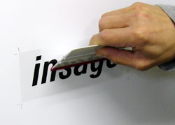 ステッカーの表面に貼ってある透明のアプリケーションシートをゆっくり剥がします。文字、ロゴなどが着いてこないか確認しながら剥がして下さい。面に貼付きにくい場合はしっかり水を抜いてから水が乾くまでしばらく(数時間〜数日)放置してからアプリケーションシートを剥がして下さい。特に気温が低いと貼付きにくいです。 |