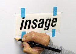 定規等を使用し貼る位置を決め養生テープ等で仮止めします。仮止めした位置に鉛筆、ダーマトグラフ等で印を付けます。 |