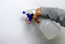 貼付け位置全体に中性洗剤入りの水を霧吹きで噴いて下さい。上の写真ぐらいの霧吹きの場合で水を満タンに入れ中性洗剤を2〜3滴程度入れたものを使用して下さい。 |