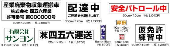 カッティングステッカー価格表